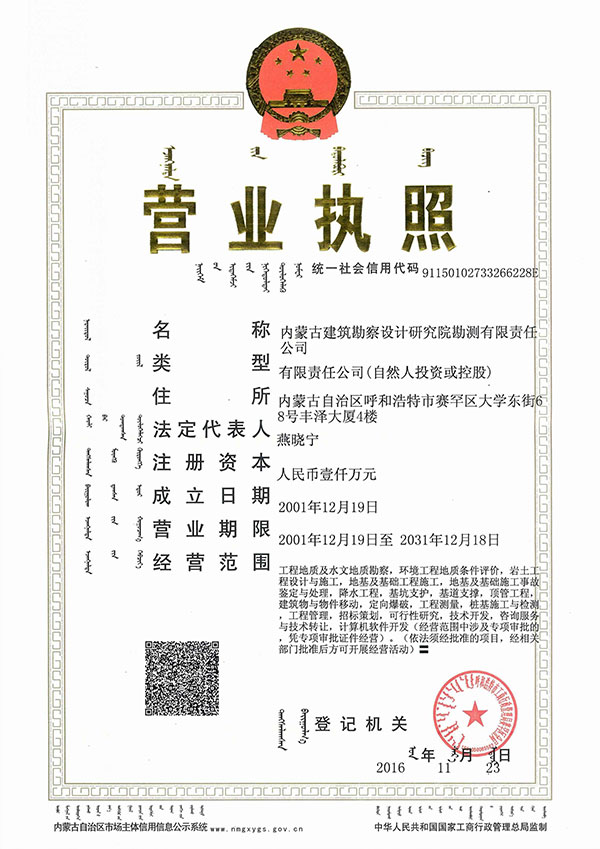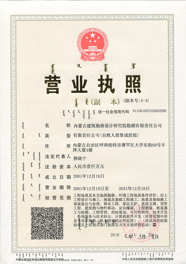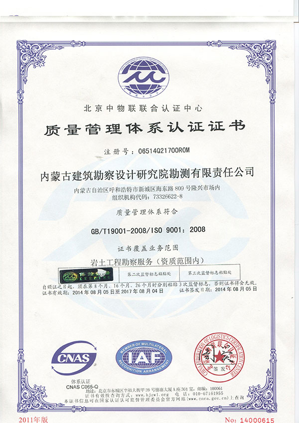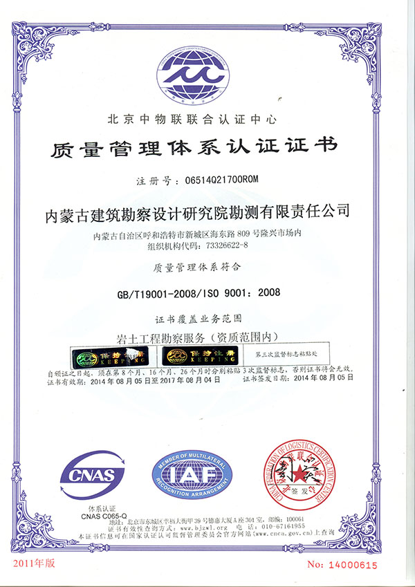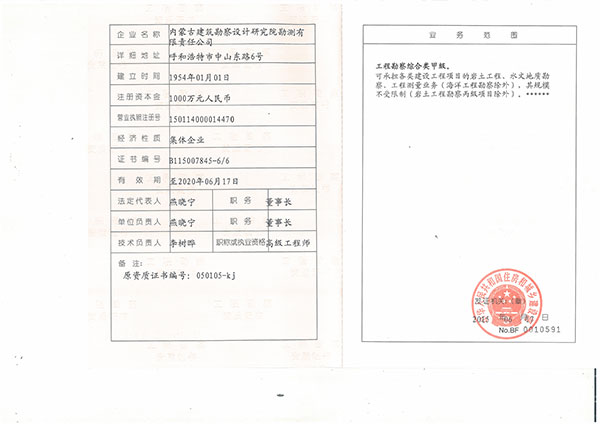 - 內蒙古建筑勘察設計研究院勘測有限責任公司,是全國首家完成 轉企建制的省級建筑勘察設計單位。公司前身為內蒙古建筑勘察 設計研究院勘測分院, 成立于1954年 ,經過六十多年的發(fā)展, 現已成為全區技術力量雄厚、專業設置齊全的集巖土工程勘察 、 設計、治理、檢測、監(jiān)理、咨詢、水文地質勘查、工程測量、科 研為一體的綜合性企業 ... ... [查看詳情]